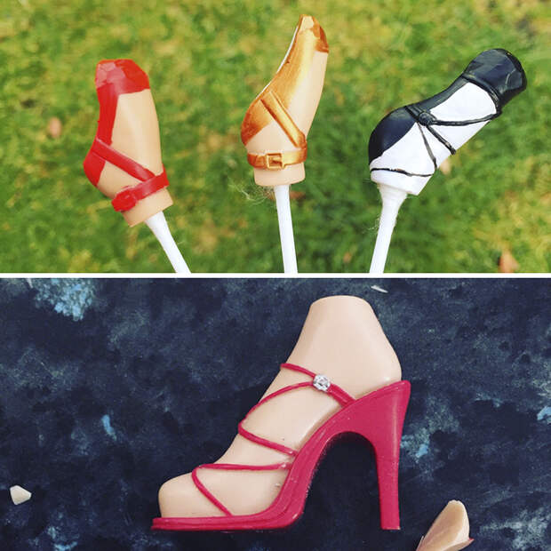 I try to rescue and reuse as much as possible, including carving high heels into ballet shoes