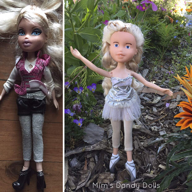 Rescuing and upcycling preloved dolls. Cleaning them, washing and brushing their hair, repainting their face and giving them new outfits appropriate for young children.