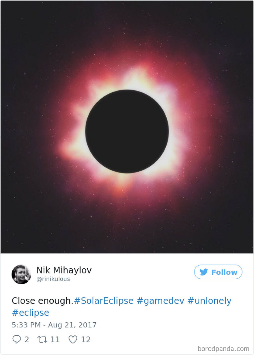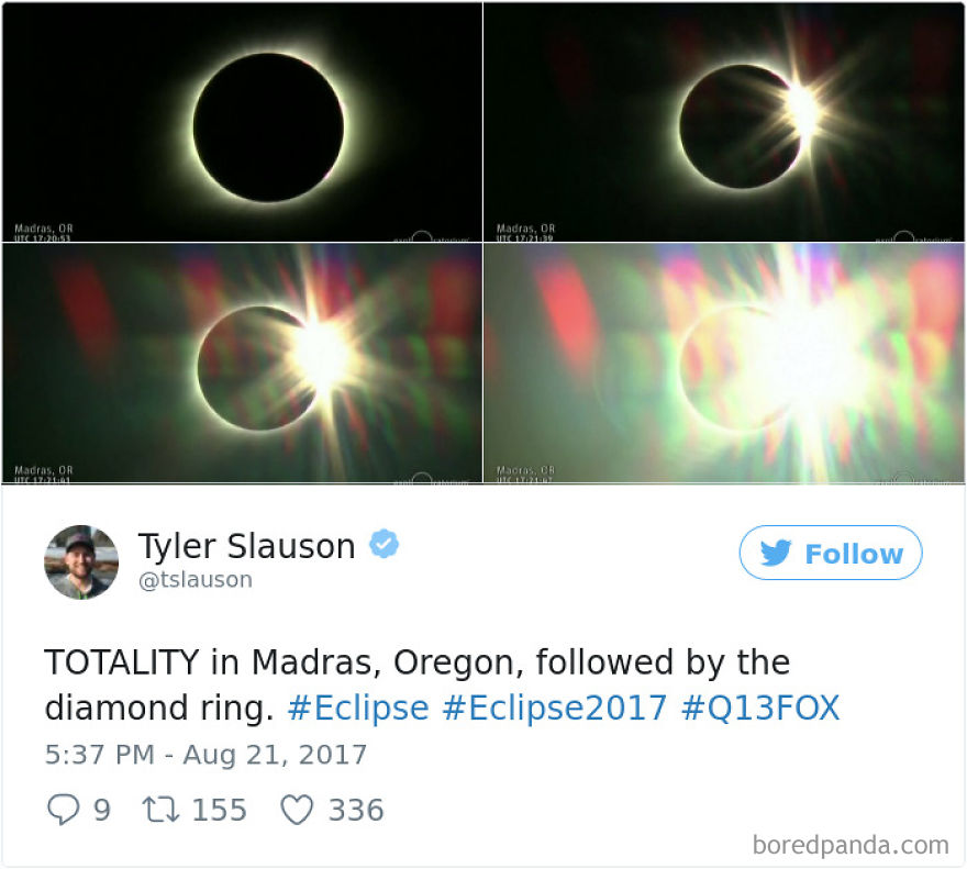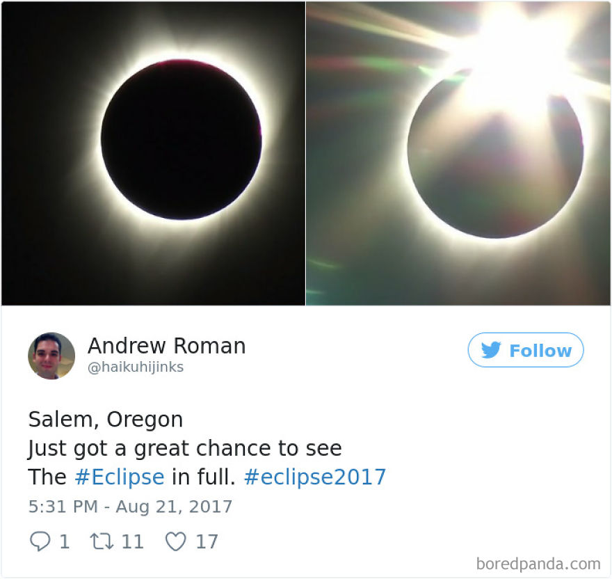 On Monday, August 21, 2017, millions of people were staring at the same thing through doofy glasses, as they tried to catch a glimpse of the solar eclipse. Not only that, they also immortalized the awe-inspiring moment in photos, and Bored Panda has collected the best of them in case you missed the phenomenon or can’t get enough of it.