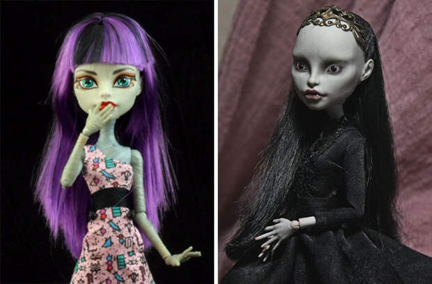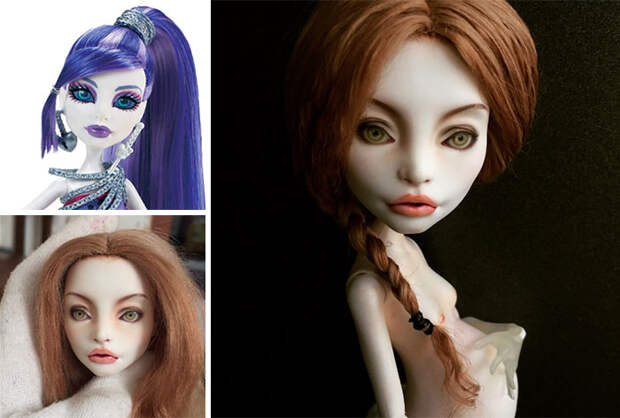 She takes mass-produced dolls, such as Monster High girls or Barbies, and turns them into totally new, unique and one-of-the-kind dolls. They each have little “flaws,” like real people have, which she includes by not only repainting but also modifying dolls’ shapes and working with wigs. “I don’t like when the new face of the doll is ideal and perfectly symmetrical, it makes it lifeless,” Olga told Vogue. “I always deliberately leave some flaw that may not be noticeable to everyone, but [gives] the doll invisible charisma. Perhaps, this flawed beauty is the message that my dolls carry.”Below you can find some of the amazing “flawed” beauties by Olga Kamenetskaya.